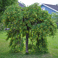 Саженцы акации желтой Пендулы выделяются необычным внешним видом взрослого дерева крупномера. Ветки расходятся от кроны и опускаются вниз, образуя изящный внешний облик. Диаметр взрослого дерева также составляет два метра. К плюсам можно отнести возможность продолжительное время сохранять зеленый оттенок листвы. Во время цветения на ветках раскрываются бутоны, длина каждого не превышает 20 мм. В качестве плодов, на ветках образуются цилиндрические плоды, которые раскрываются и рассыпают вокруг дерева свои семена. Нуждается в большом количестве солнечного света. Для посадки можно использовать любой тип почвы. Засухоустойчива.