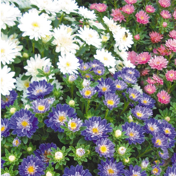 Семена астры китайской Серенада смесь расцветок - идеальный вариант для наполнения клумб, оформления бордюров и украшения участков вокруг беседок или садовых скамеек. Микс включается семена красных, белых, розовых, фиолетовых и лиловых астр, высота которых не превышает 60 сантиметр. Цветы можно выращивать для срезки и составления ярких букетов.