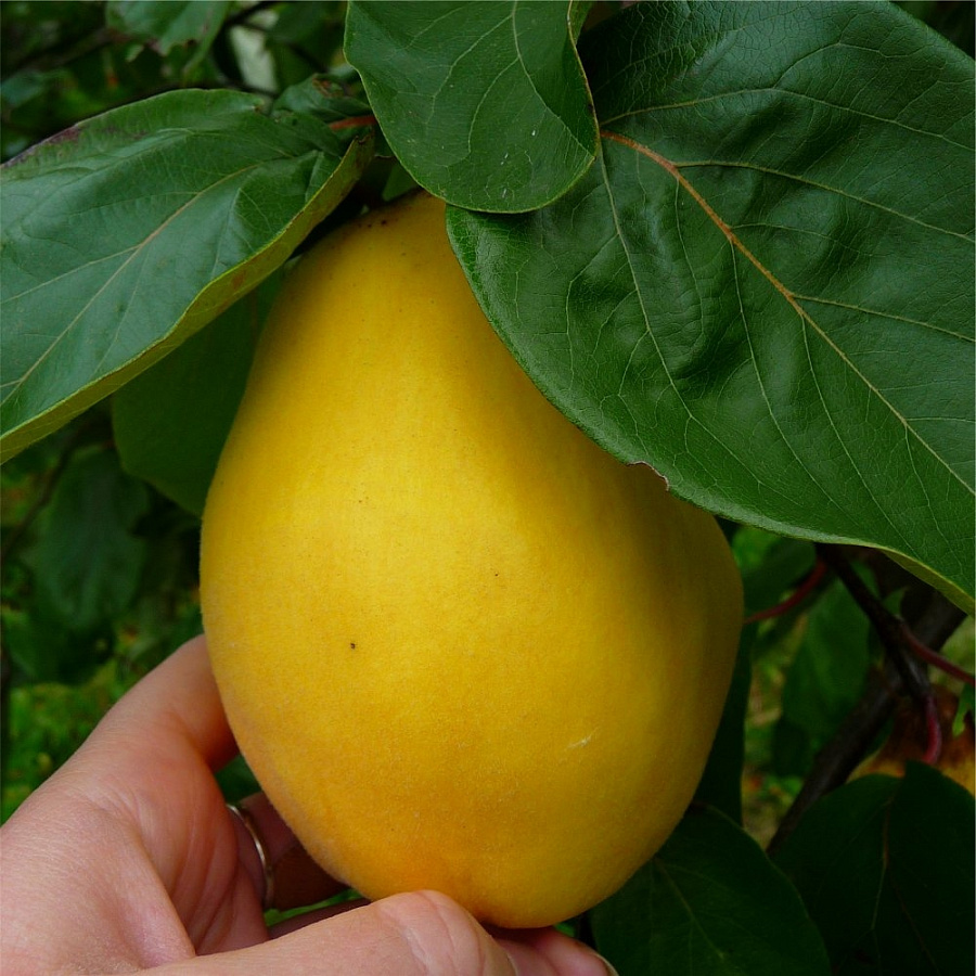 Саженцы айвы продолговатой грушевидной (Gruszkowata) своё название получили за яркие жёлтые плоды, похожие на грушу. Они созревают осенью, очень крупные, с массой до 800 г. Мякоть сладкая, но жёсткая и терпкая, поэтому чаще употребляют в переработанном виде. Самое популярное блюдо – мармелад, желе и варенье.