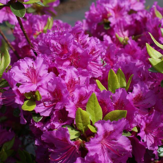 Саженцы азалии сорта Konigstein порадуют обильным продолжительным цветением. В мае на ветвях появляется огромное количество нежных соцветий сиреневого оттенка. Цветущий куст смотрится невероятно эффектно, как в одиночной посадке, так и в групповой композиции. Высота взрослого растения не превышает полметра.