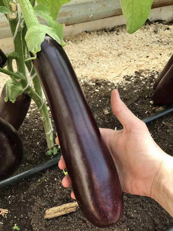 Семена баклажанов "Русский Размер F1" — это удивительный сорт, который отличается размерами плодов. На крупном кусте, высотой до 80 см, в июле-августе созревает урожай, которому нет равных. Длина плода достигает до 40 см, а масса до 250 грамм. Кожица тонкая, блестящая, темно-фиолетовая. Мякоть белая, обладает великолепными вкусовыми характеристиками. Еще одной отличительной чертой этого высокоурожайного сорта семян баклажанов "Русский Размер F1" является его устойчивость к жаре и засухе.
