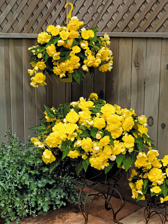 Луковицы бегонии клубневой Cascade yellow высаживают на постоянное место в мае месяце. Почва растениям подходит любая садовая, питательная, хорошо дренированная. Участок для размещения должен быть полузатененный. Бегония клубневая Cascade yellow — это компактный многолетник, который подходит для выращивания в уличных вазонах, подвесных кашпо, балконных ящиках и открытом грунте. Высота растения обычно не превышает 35-40 см. Махровые цветочки густо покрывают кустик с июня до сентября. Окраска соцветия очень яркая, насыщенно-желтая. Благодаря такому цвету многолетник смотрится эффектно и привлекательно.
