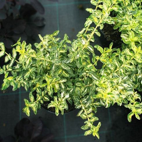 Саженцы Бересклета форчуна Голден Харлеквин (Euonymus fortunei) – декоративный карликового кустарник, высотой до 40 сантиметров, шириной до 100 сантиметров. Относится к вечнозеленым почвопокровникам.