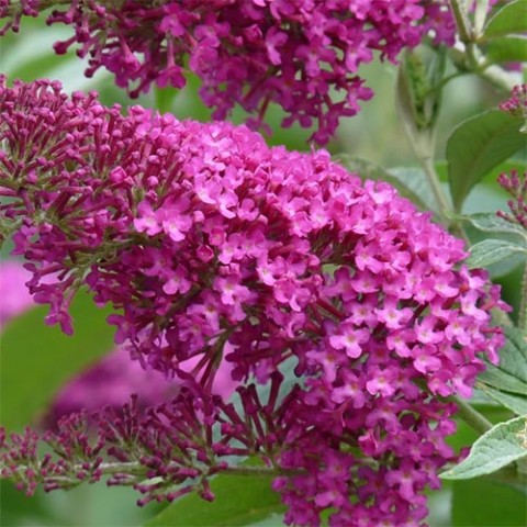 Рассада буддлеи (Осенняя сирень) Давида Summer Beauty порадует эффектной кроной, которую составляют пышные пурпурные соцветия. Во время цветения воздух наполняется приятным медовым ароматом, привлекающим огромное количество бабочек. Растение используется для создания эффектных одиночных посадок и составления красивых композиций.
