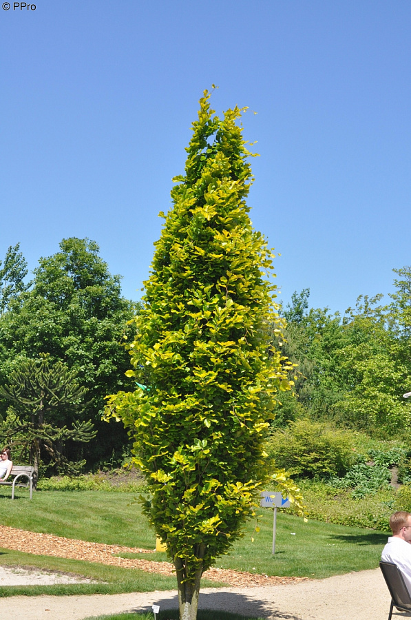 Саженцы Бука лесного Дайвик Голд (Fagus sylvatica) – морозостойкое лиственное дерево, достигающее в высоту 15 м. Узкую колонновидную крону формируют яйцевидные и эллиптические листья желтой и зеленой окраски. Максимальная ширина кроны составляет 3-4 м.
