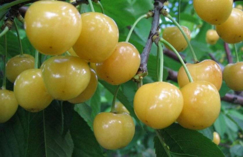 Саженцы Черешни Россошанская золотая (Prunus avium) достигает в высоту 4 метров. Крона средней густоты, широкопирамидальной формы. Листья имею насыщенный зеленый оттенок. Дерево цветет и плодоносит долго – почти 25 лет. Не подходит для холодных мест, цветки не выдерживают ранние весенние морозы. Нуждается в опылении. Плодоносит стабильно, если соблюдаются все условия ухода. Плоды отличаются длительностью хранения. Хорошо переносят перевозку. Отличаются высокими вкусовыми качествами. Подходит для употребления в свежем виде. Можно использовать в кулинарии для приготовления сока, варенья или компота.