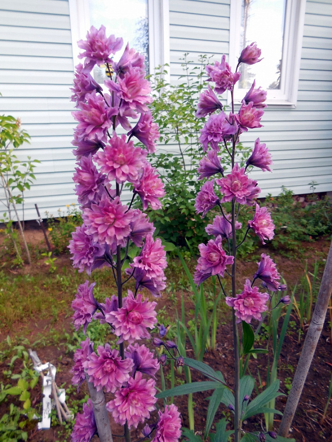 Дельфиниум высокий хайлендер фламенко - это великолепное растение с махровыми цветками фиолетового цвета, окрашенными оттенком бургундского вина. Его стебли достигают высоты 75-90 см, а диаметр цветка составляет 6 см. Этот цветок цветет в июне и июле, радуя глаз своим изысканным видом.