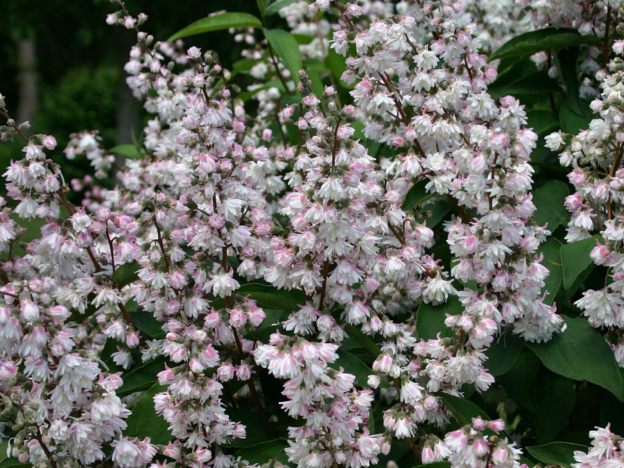 Саженцы дейции Плена (Plena) вырастают небольшим кустиком около 1 метра в высоту с прямыми, прочными стеблями. Листва ланцетно-продолговатая, насыщено-зеленого окраса. Цветет в июне-июле ширококолокольчатыми, махровыми цветочками, которые собраны в плотные пучки. Цветение густо покрывает стебли, что выглядит неповторимо. Достоинства дейции Плена (Plena): - обильное цветение - засухоустойчива - неприхотлива в уходе Крупномеры дейции Плена (Plena) выращивают в солнечных местах. Поливать нужно умеренно и не допускать застоя воды. Применяется для посадок возле усадьбы, беседок, в каменистых садах.