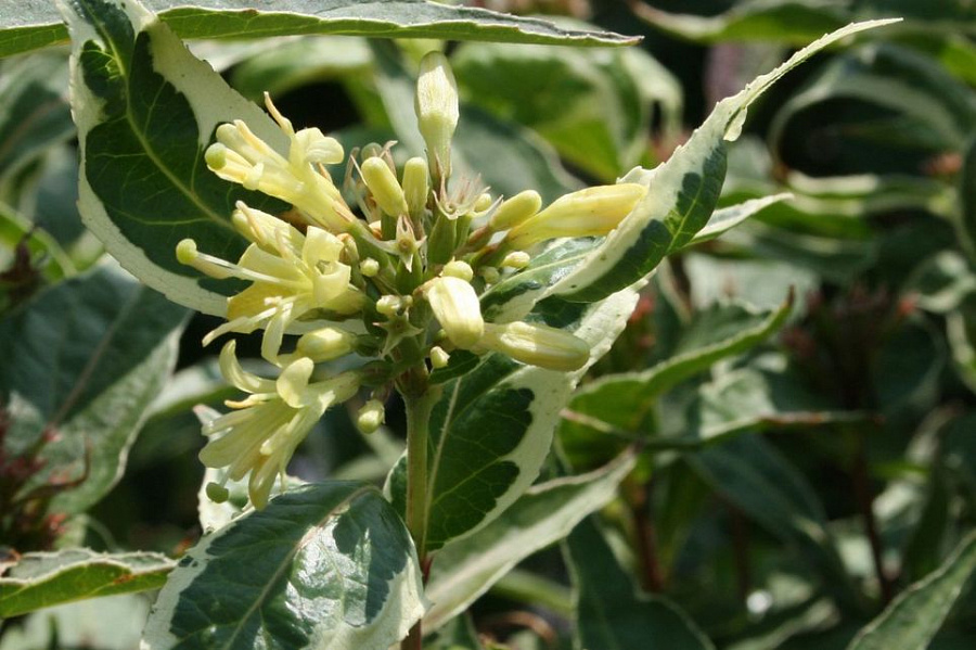 Саженцы кустарника Кул Сплэш (Cool Splash) позволят украсить или дополнить различные зеленые зоны. Это растение обладает густой листвой бело-зеленого окраса, которая является лучшим украшением и отличительной особенностью. В период с июня по август цветет мелкими желтыми цветами, не имеющими особой декоративной ценности. Плодоношение в сентябре коробочками с семенами. Кустарник отлично растет на теневых площадках.