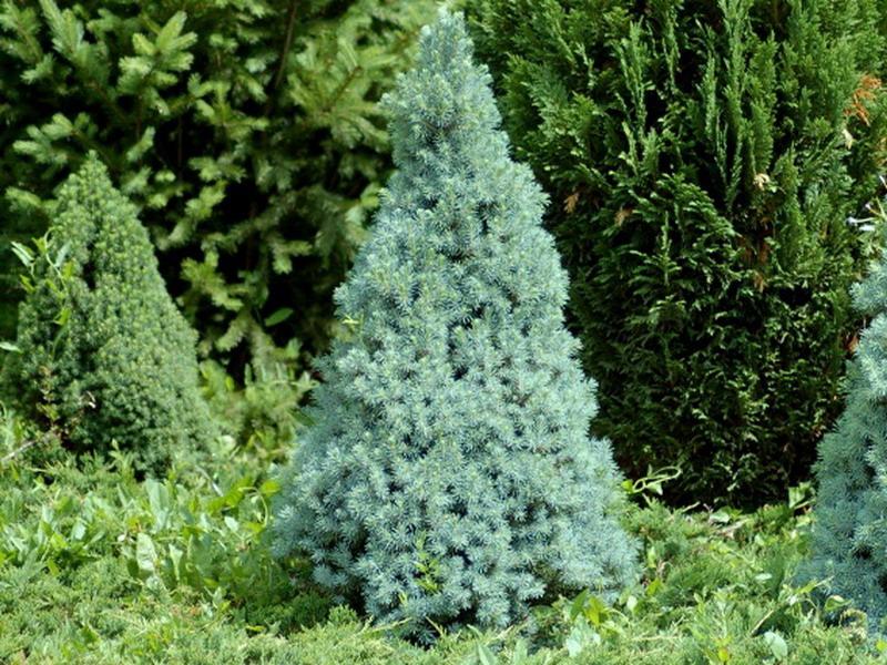 Саженцы Ели канадской Сандерс Блю (Sander's Blue) – карликовое медленнорастущее дерево пирамидальной формы с кроной нежно-голубого окраса. За первые 10 лет вырастает на 70-80 сантиметров в высоту, а позже может вырасти до 300 сантиметров в длину и 200 сантиметров в ширину. Побеги плотно прилегают к стволу.