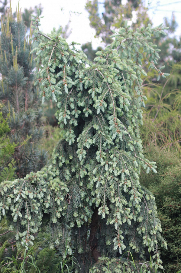 Саженцы Ели колючей Глаука Пендула (Glauca Pendula) – это быстрорастущее дерево, может вырастать до 8-10 метров. Высота растения напрямую зависит от от высоту, на которую сделана прививка и формирование ведущего отростка. Каждый год вырастает на 30 сантиметров. Форма кроны непривычная.