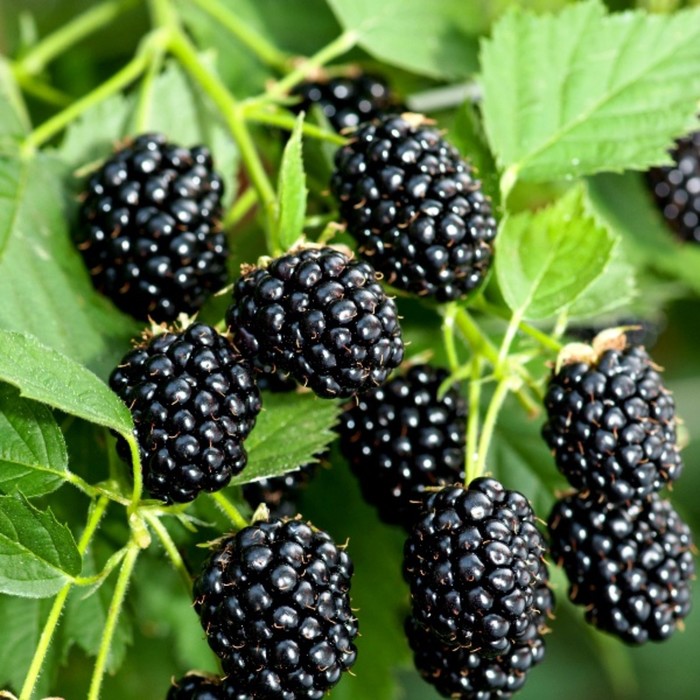 Саженцы ежевики кустистой Честер (Chester Thornless) очень крепкие, расстилаются вдоль земли, ростки не имеют шипов. Главная особенность данного вида – листья: они остаются зелеными и весной, и летом. Плоды некрупные, с утонченным ароматом, имеют одновременно и кисловатый, и сладковатый вкус. Уход за крупномером несложен: