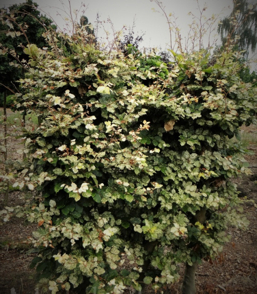 Саженцы Бука лесного европейского Марквард (Fagus sylvatica) – декоративное лиственное дерево, привлекательное при создании кустарно-древесных композиций за счет необычной расцветки листвы. Вырастает до 3 м в высоту. Имеет эллиптическую форму листьев с пестрой неоднородной расцветкой. Весной листья бело-зеленые, летом – желто-зеленые, сравнительно крупные.