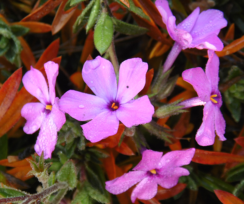 Флокс является полегающим многолетним растением. При разрастании он образует густой живой ковер от 12 до 15 см в высоту. Листья растения бело-зеленые, а стебли в основном лежачие или опущенные. Цветы флокса нежного розового оттенка до 1,5 см в диаметре. Они собраны в рыхлое соцветие зонтик. Цветение начинается в конце весны и длится весь июнь около 25 – 35 дней. Растение лучше сажать на открытых солнечных участках, на сухой почве. Благодаря неприхотливости его чаще всего применяют в пейзажных цветниках, в миксбордерах и для украшения каменистых садов.