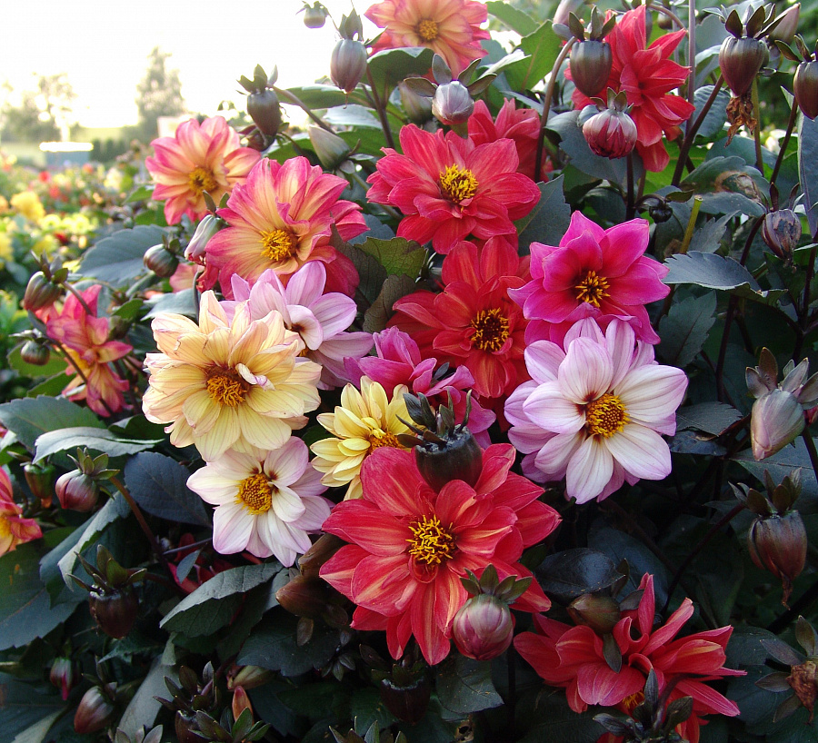 Георгина Mefistofel - это удивительное растение с бронзово-коричневыми цветками, которое поразит вас своей красотой и изяществом. Его стебель достигает высоты до 50 см, что делает его идеальным выбором для групповых посадок в вашем саду. Листья георгины Mefistofel имеют уникальную форму и текстуру, добавляя дополнительный шарм этому растению.