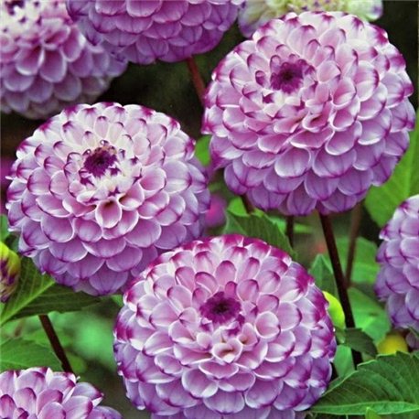 Луковицы георгины шаровидной Дженова (Genova) образуют нежное и приятное взгляду растение. Невысокие многоствольные кустики увенчаны светло-сиреневыми помпонами. Фиолетовая окантовка лепестков добавляет георгине яркости. Дизайнеры советуют включать Дженову в состав цветника в деревенском стиле, высаживая по соседству с рудбекией, ромашкой, лаватерой, колокольчиками.