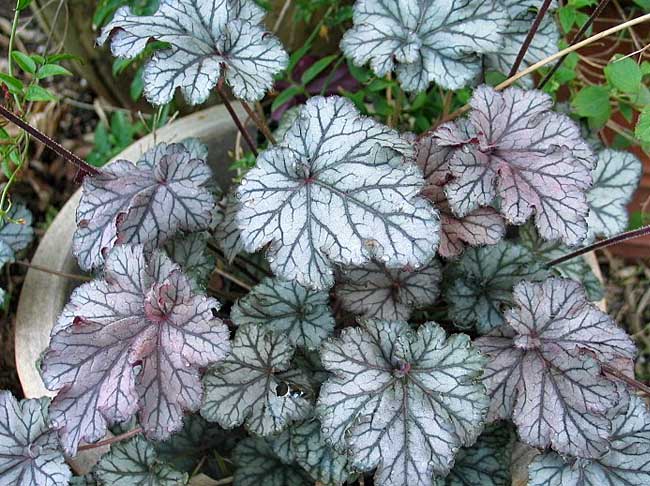 Рассада гейхеры Джипси Дансер (Gypsy Dancer) отлично впишется в смешанную посадку с применением других декоративных растений. Листва многолетника имеет буро-серебристую окраску, на фоне которой контрастно выделяются темно-пурпурные прожилки. Этот сорт цветет на протяжении всего лета, выпуская стебли с мелкими белыми соцветиями. Выращивать рассаду гейхеры Джипси Дансер (Gypsy Dancer) несложно: необходимо поливать растение по мере высыхания земли. Воды не должно быть слишком много, переувлажнение может стать причиной появления гнили и развития болезней. Многолетник отлично зимует без укрытия.
