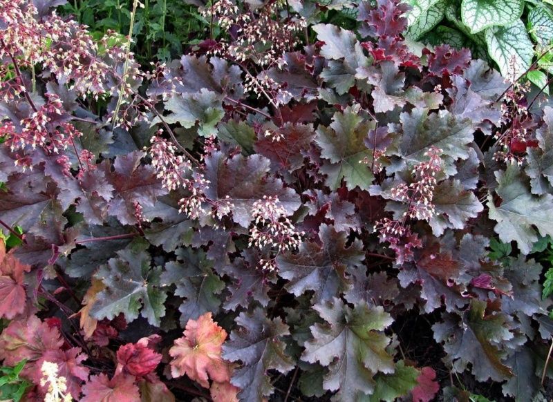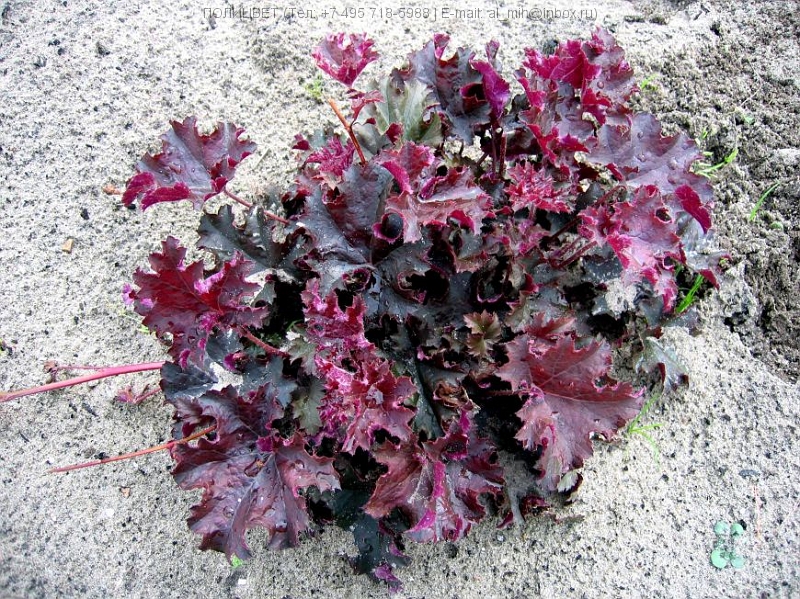 Рассада гейхеры Пурпл Петикоэтс (Purple Petticoats) украсит ваш сад сказочными гофрированными листьями, пурпурные края которых, как будто, припорошены инеем. В начале лета потрясающий вид растения будет дополнен мелкими кремовыми цветочками. Этот сорт широко применяется в ландшафтном дизайне для создания ярких акцентов смешанных посадок и формирования миксбордеров. Ухаживать за рассадой гейхеры Пурпл Петикоэтс (Purple Petticoats) совсем несложно: достаточно лишь регулярно поливать кусты, не допуская переувлажнения почвы. Неприхотливый многолетник не боится вредителей и болезней.