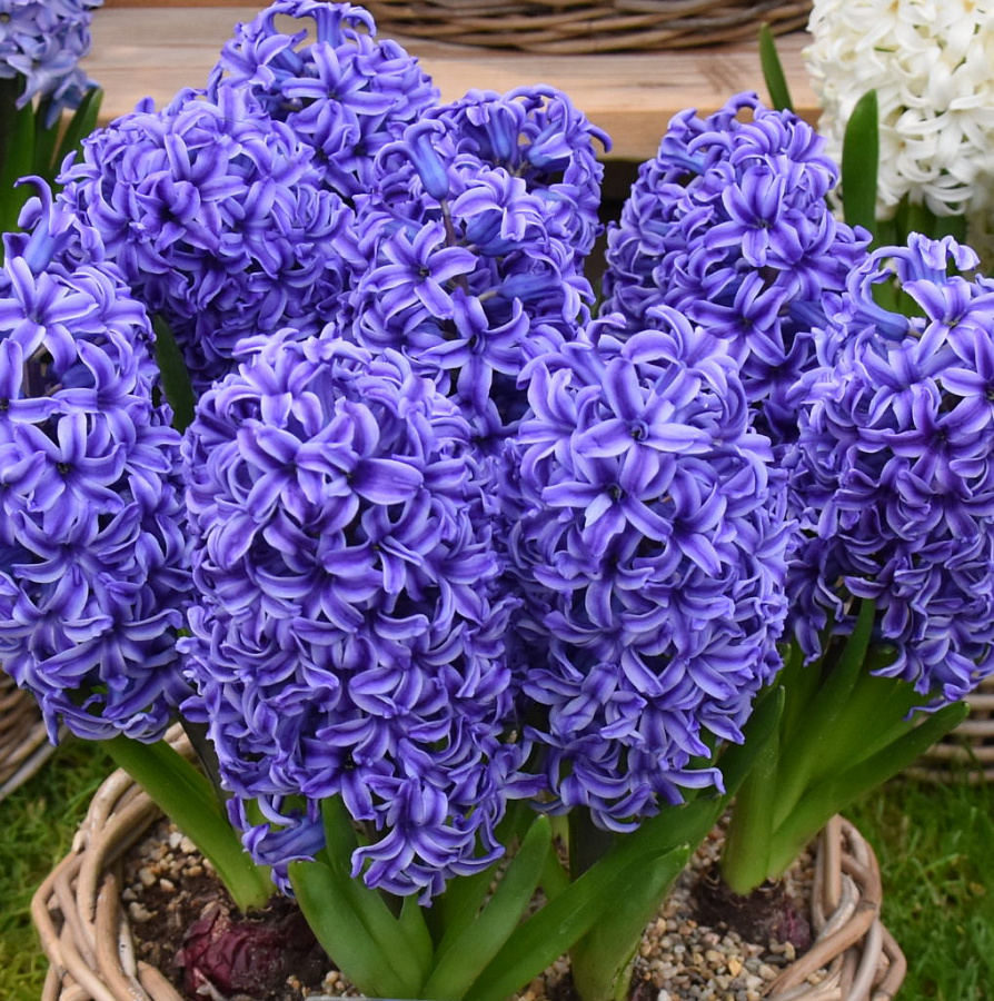 Луковицы гиацинта крупноцветкового Блю Жакет (Blue Jacket) вырастают в роскошные кисти с множеством голубых цилиндрических соцветий. Лепестки цветков переливаются синими и небесными оттенками. Плотные стебли окружены длинными стреловидными листьями. Цветение начинается в марте – апреле и длится до 2-х недель. Обратите внимание, что на луковицы и цветение гиацинтов возможна аллергическая реакция. Растение пригодно для посадки на клумбы и эффектно смотрится в горшках.