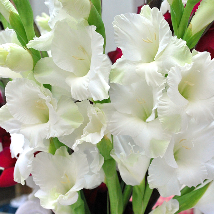 Луковицы Гладиолуса гибридного Санкарре (Sancerre) выпускают высокие цветоносы до 100 сантиметров, на которых в июле распускаются огромные цветки белой окраски. Листья вертикальные, линейные, не ветвящиеся. Цветущее растение выглядит строго и элегантно. Семенной материал высаживают в легкие плодородные почвы на расстояние 15 сантиметров друг от друга. Место подбирают открытое, защищенное от сквозняков и ветра. Клубнелуковицы в открытом грунте зимовать не оставляют. Гладиолус Санкарре можно выращивать в контейнере и горшках. Этот сорт пригоден для срезки и составления монобукетов.