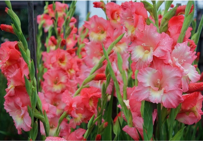 Луковицы гибридного гладиолуса Тэдс Фаворите (Ted's Favourite) используют в оформлении клумб, а также в качестве декоративных цветов на срез. Это небольшое растение, его высота чуть более метра, бутоны нежно-розового цвета диаметром не более 16-18 сантиметров. Соцветия плотные, располагаются по стеблю в одностороннем порядке. Листья разворачиваются веером, создавая дополнительное декоративное оформление для букета. Гладиолусы Ted's Favourite прекрасно смотрятся при одиночной и групповой посадке, они удобны для составления букетов. Этот цветок не имеет запаха и подходит для горшочного выращивания, в том числе в жилых помещениях.
