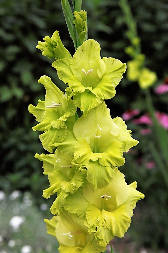Гладиолус крупноцветковый эвергрин - это великолепное растение с зелено-желтыми цветками, которое поражает своей красотой и изяществом. Высота этого гладиолуса может достигать 80-110 см, а размер цветка радует глаз своими 8-12 см. Это растение отличается многолетним цветением в июле, августе и сентябре, радуя вас своими яркими цветами. Гладиолус крупноцветковый эвергрин предпочитает солнечные участки с дренированными богатыми почвами, но также может расти в полутени.