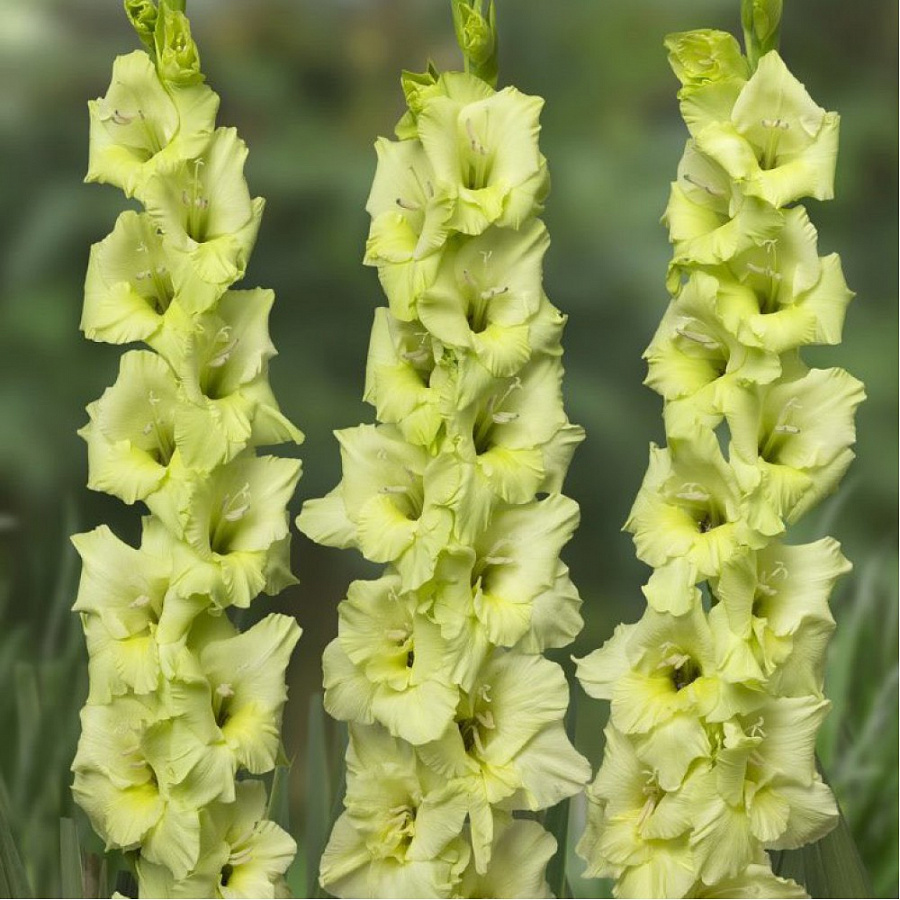 Саженцы и рассада гладиолуса крупноцветкового Мисс Грин (Gladiolus) выращивают в условиях яркого солнечного света. Чем больше солнца впитает в себя молодое растение, тем интенсивнее будет его окрас. Мисс Грин выпускает бутоны зелено-желтого цвета с салатовым оттенком. Смотрится гладиолус необычно и довольно ярко.