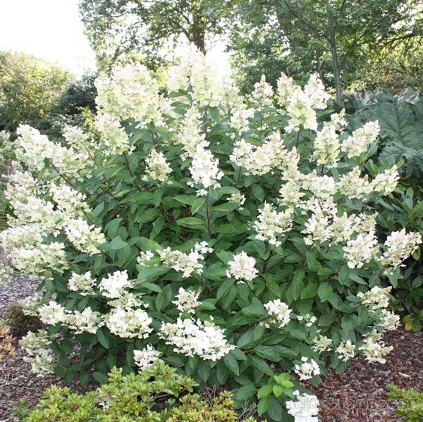 Саженцы гортензии метельчатой Floribunda (Флорибунда) станут необычным украшением сада: крупные белые кружевные цветки розовеют с наступлением осени. Этот декоративный крупномер молниеносно растет и очень обильно цветет – с июня по сентябрь его усеивают пышные соцветия. Выращивая гортензию этого сорта, стоит помнить о некоторых особенностях ухода за ней: