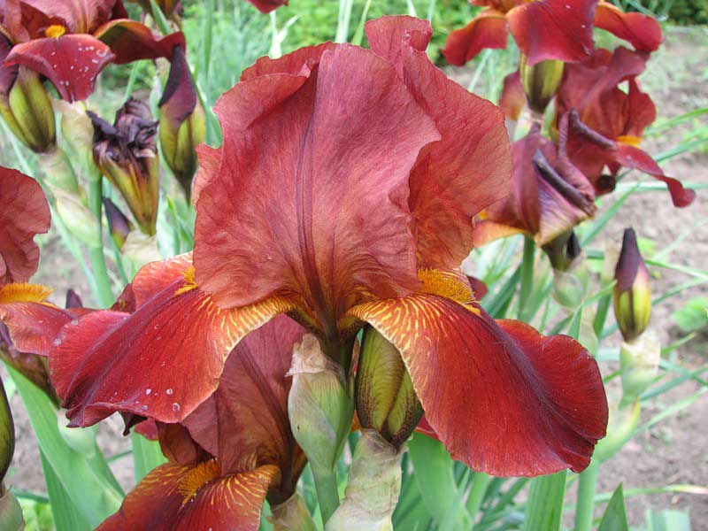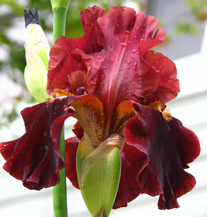 Ирис бородатый "Мен Фром Рио" - это великолепное растение, которое поразит вас своей красотой и изысканностью. Его темно-бордовые цветки привлекают внимание и создают неповторимую атмосферу загадочности и роскоши в вашем саду. Высота растения может достигать до 90 см, что делает его заметным акцентом в ландшафте.