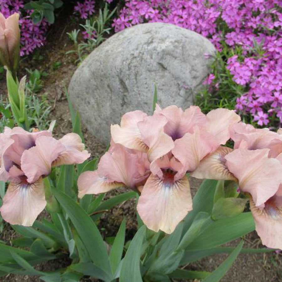 • высокая засухоустойчивость. Выпавшие семена редко дают всходы, поэтому принято размножать растение делением корня. Цветок имеет пастельно-розовый оттенок с коричневыми прожилками и голубовато-фиолетовой бородкой. Ирис карликовый Вольт прекрасно смотрится в групповых посадках на небольших клумбах или по периметрам садовых дорожек.