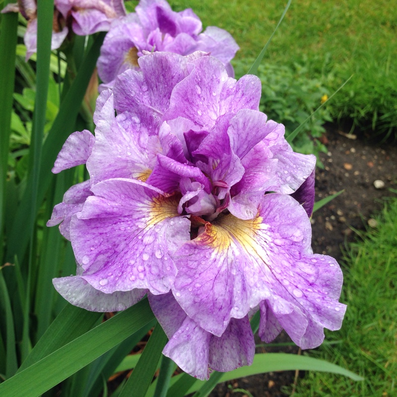 - неприхотливость в уходе. Бутон ириса сибирского Розовое Парфе действительно по форме напоминает многолепестковую розу. Оттенок у цветка розово-лавандовый с желтыми пятнами у оснований бархатных лепестков. Семена часто высеиваются после цветения и прорастают. Цветение этого сорта ириса наполняет воздух в саду приятным благоуханием.