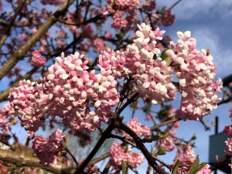 Саженцы калины боднатенской Даун (Dawn) – отличный вариант для оформления душистых садов и живых изгородей; украшения цветников и рабаток, солитерной посадки. Листья меняют цвет от бронзового до зеленого и бордового, а розоватые соцветия источают аромат ванили и сирени одновременно. Крупномеры и саженцы:
