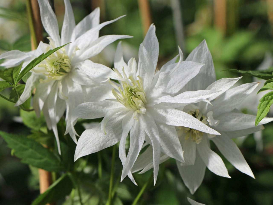 Клематис Альбина Плена (Albina plena) неприхотливый и раннецветущий гибрид. Обильно цветет на побегах прошлого года с апреля по май. Цветки белые, махровые, открытые, колокольчиковидные, диаметром 6-8 см, слегка свешивающиеся. С июня по сентябрь украшены декоративными пушистыми светлыми соплодиями. Предпочитает солнечные места, но может расти и в полутени, хорошо зимует. Для выращивания пригодны супесчаные или суглинистые почвы со слабощелочной или нейтральной реакцией. Высокорослый, длина лиан достигает 300-400 см. Саженцы клематиса гибридного Альбина Плена (Albina plena) рекомендуется выращивать рядом с опорой. Подходит для посадки у ограждений, декоративных деревьев, кустарников и хвойников. Может использоваться как почвопокровное растение.
