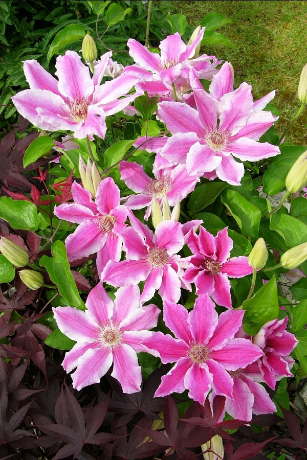 Саженцы клематиса гибридного Карнаби (Carnaby) морозостойкие, не требовательные к условиям выращивания и уходу. Для выращивания подходят места, защищенные от ветра и сквозняков, большую часть дня находящиеся в полутени. Цветёт клематис гибридный Карнаби (Carnaby) обильно, с мая по июль. Цветки двуцветные светло-розовые с малиновой полоской посередине. Подходит для посадки у ограждений, беседок, решёток и других садовых опор. Может виться по натуральным опорам, например, кустарникам или полукустарникам.