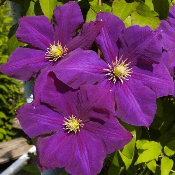 Саженцы Клематиса гибридного Lech Kaczynski (Clematis) за счет листовых хвостиков цепляется за опору и достигает высоту 200 сантиметров. Может использоваться и как почвопокровное растение. Предпочитает защищенные от сквозняка и ветра места, обильно освещенные солнечным светом. Почва должна быть легкая, плодородная. Цветки сорта Лех Качинский распускаются в июне на лиане и радуют глаз до августа месяца. Цветки пурпурно-фиолетового цвета, вырастают до 16 сантиметров в диаметре. Можно использовать для вертикального озеленения балкона, террасы или ограждения садового участка.