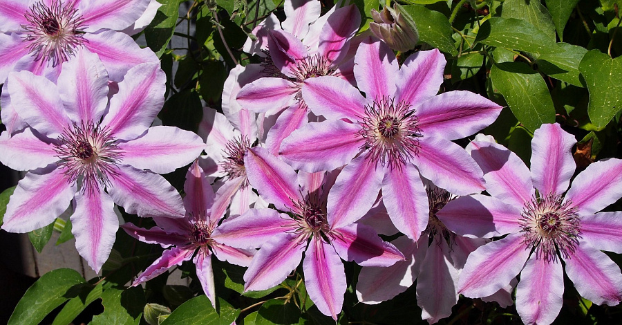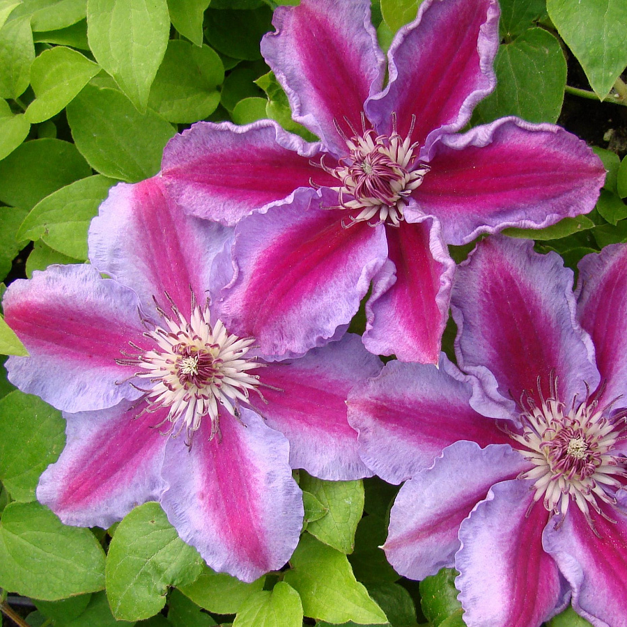 Саженцы клематиса гибридного Тюдор (Tudor) отличаются неприхотливостью, морозостойкостью, а так же ранним, продолжительным и обильным цветением. Лиловые цветы с продольными пурпурными полосами, начинают распускаться в мае-июне, повторно растение зацветает после летней обрезки в июле-августе. Диаметр венчиков колеблется в пределах 8-12 см. Цепляясь за опоры листовыми черешками, декоративная лиана способна подняться на высоту 150-200 см. Клематис гибридный Тюдор (Tudor) подходит для выращивания рядом с беседками, арками или карликовыми деревьями и миниатюрными кустарниками.