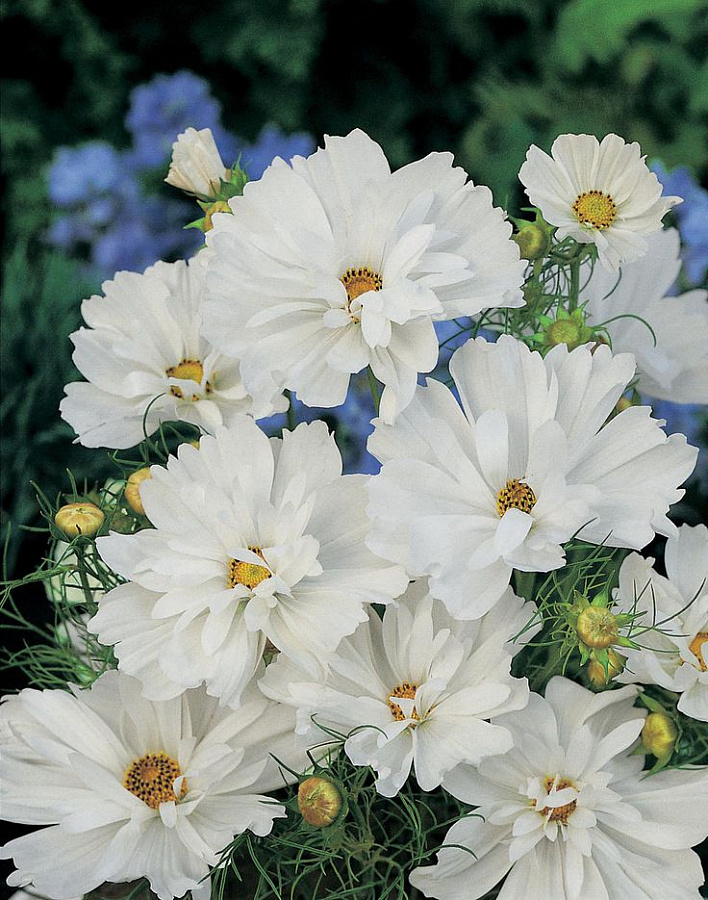Цветение этого растения приходится на весну и лето, что позволит вам наслаждаться его красотой на протяжении длительного времени. Космея Психе Вайт прекрасно смотрится в групповых посадках, создавая неповторимый акцент в вашем саду.