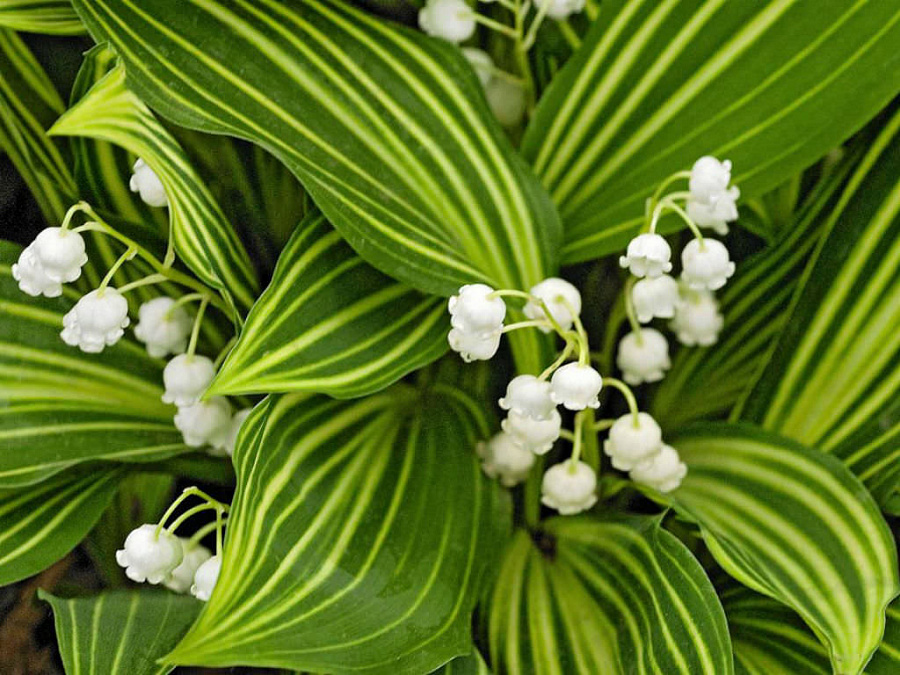 Рассада ландышей "Альбостриата" (Albostriata) обладает высокими декоративными качествами не только во время цветения. Они проявляются уже когда распускаются первые листочки. Ведь окрашены листики в насыщенно-зеленый цвет с бело-желтыми полосками. Цветы - кремово-белые. Цветонос закручен спирально. На нем - 8 - 12 цветочков, собранных в кисть. Их размер - 4 х 5 мм. Цветет сорт - 10 - 15 дней. Высаживают рассаду ландышей "Альбостриата" в полутень - тень. Место подходит с хорошей, плодородной, рыхлой и влажной почвой, без застоя воды.