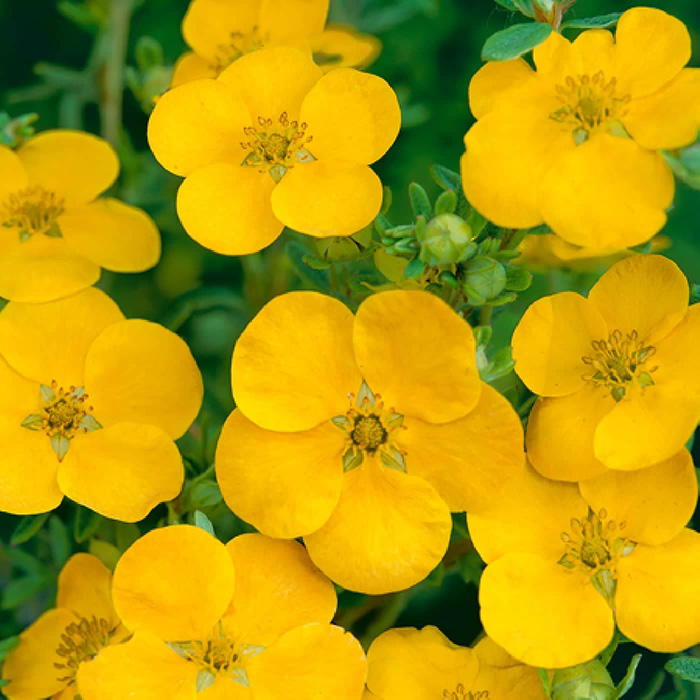 Саженцы лапчатки кустарниковой Танжерин (Tangerine) – достаточно компактный сорт. Максимальная высота этого растения – 60 сантиметров. Внешний облик крупномера радует взор – густая сочно-зеленая крона усыпана цветами, оттенки которых варьируются от золотисто-желтых до медно-оранжевых. Кустарник капризен: требуется регулярный полив, особенно в засушливые периоды; субстрат должен быть богатым, периодически крупномер рекомендуется удобрять; весной растение нужно обрезать – удалять старые побеги. При соблюдении этих правил лапчатка будет радовать пышным цветением с начала лета до заморозков.