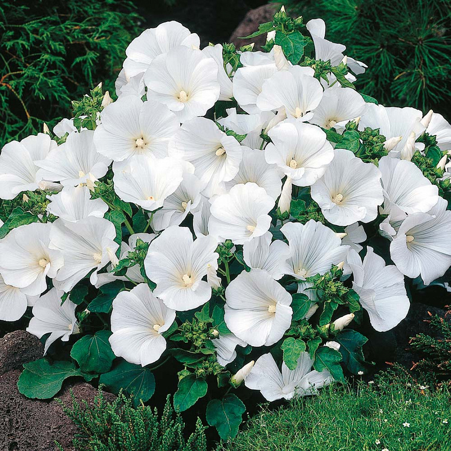 Лаватера "Красотка Белая" - это воплощение нежности и изысканности в вашем саду. Это растение поразит вас своей красотой и изяществом. Сорт "Красотка Белая" отличается высотой до 60 см, что делает его идеальным для миксбордеров и групповых посадок. Его белые цветы привлекут внимание и подарят вашему саду особый шарм.