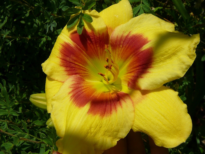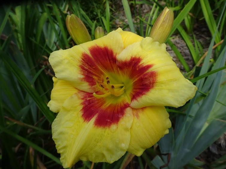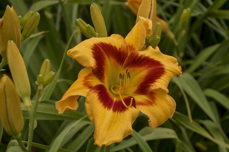 • Окраска цветка : Золотисто-желтая с красным глазком, салатовым горлом