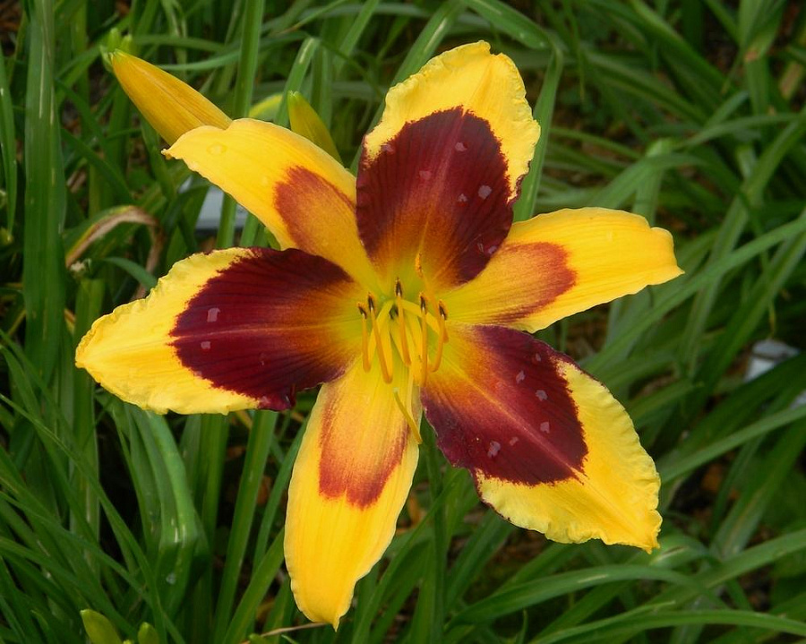 Рассаду лилейника гибридного Indian sky можно смело выбирать не только опытным, но и начинающим садоводам – этот сорт сочетает неприхотливость и высокую декоративность. Крупные цветы имеют необычную окраску: желтые лепестки украшены бордово-пурпурными мазками. Растение широко используется для озеленения загородных участков и городских объектов. Рассаду лилейника гибридного Indian sky могут смело выбирать те, кто не может уделять много времени уходу за растениями. Этот сорт не нуждается в трудоемких манипуляциях, ему достаточно периодических поливов и внесения подкормок.