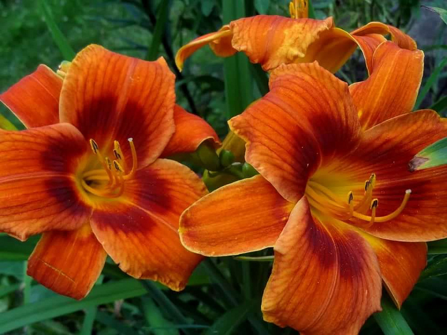 • Окраска цветка : Оранжево-охристая с темно-бордовым глазком и желтым горлом
