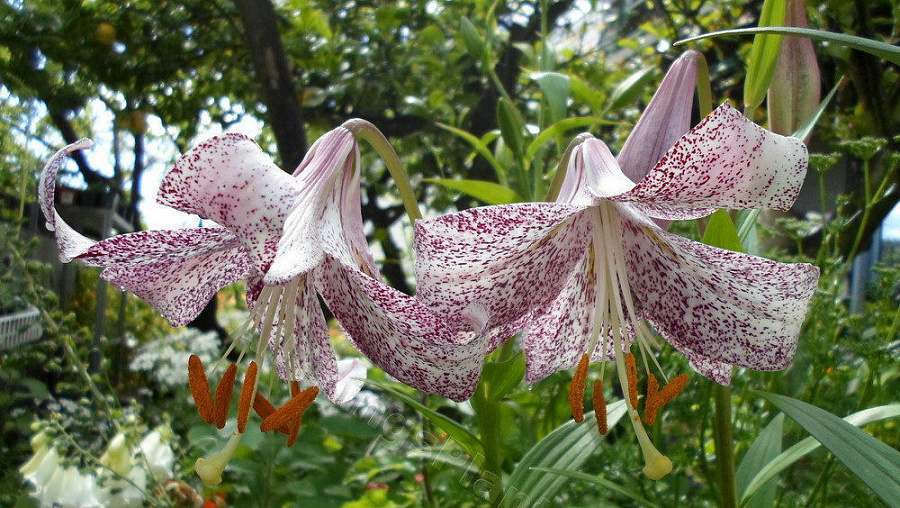• Окраска цветка : грациозные цветы белоснежного оттенка с густым малиновым крапом по нежным, слегка закрученным лепесткам