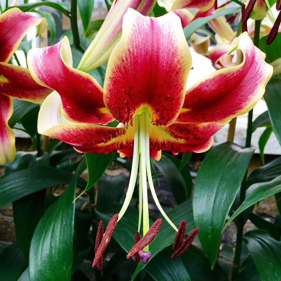 Луковицы лилии Sheherazade лучше растут на хорошо освещенных или частично затененных участках. Почва подходит любая дренированная, богатая питательными веществами, рыхлая, песчано-глинистая, известкованная. Зацветает культура в июне. Бутоны у этого сорта достаточно крупные. Лепестки с небольшим количеством крапинок отличаются волнистыми краями. Окраска бутона темно-розовая, по краям цвет переходит в желтый. Отличительная особенность лилии Sheherazade – ее цветки направлены вниз. Высота растения варьируется от 110 до 170 см. Наиболее часто культуру используют в групповых посадках с другими сортами. Реже можно встретить этот многолетник в смешанных цветниках.