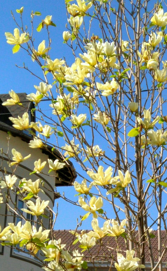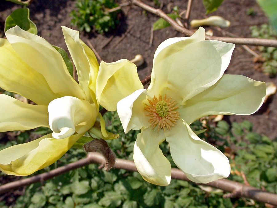 Саженцы Магнолии Еллоу Лантерн (Yellow Lantern) – быстрорастущий куст, который в весеннее время усыпан большими цветами. В саду смотрится необычно, ведь настолько крупные соцветия встречаются редко. Цветы по форме напоминают тюльпан, они распускаются на кончиках низко свисающих веток. Как и у многих магнолий, листочки появляются позже, чем распускаются бутоны. Лепестки жёлтые на кончиках и темнеют к серединке. Кустарник за десять лет может вырасти до 3.5 метров. Растение любит тепло и солнечный свет, поэтому на зиму стоит укрывать корни. Хорошо растёт на влажной и гумусной земле. Магнолию можно мульчировать на протяжении года.
