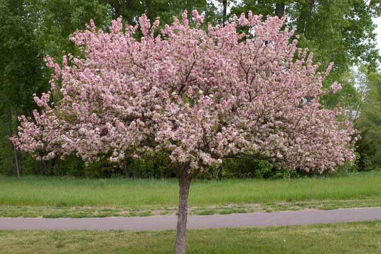Саженцы Яблони Коралберст (Coralburst, Malus) – декоративное листопадное плодовое дерево, которое относится к среднерослым сортам, его высота не более 300 сантиметров. Крона густая, плотная, симметрично закругленная, диаметром 450 сантиметров.