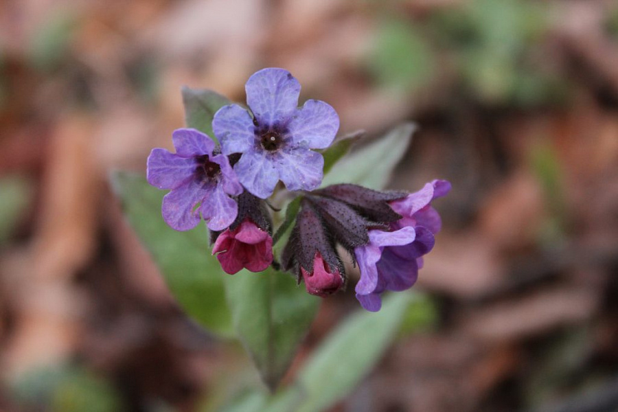 Рассада медуницы неясной (Pulmonaria obscura) имеет компактный внешний вид и вырастает около 25-35 см в высоту. Листики опушенные, собраны в прикорневую розетку и имеют пятнистый узор. В мае-июне цветет небольшими цветочками фиолетово-розового окраса. Преимущества медуницы неясной: