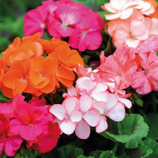 Пеларгония зональная горизонт микс - это настоящий художник среди растений, способный преобразить ваш сад в настоящий цветочный рай. Ее ствол прочный и устойчивый, а размеры растения достигают до 30 см в высоту, что делает ее идеальным выбором для групповых посадок. Листья пеларгонии зональной горизонт микс имеют насыщенно-зеленую окраску, создавая яркий контраст с миксом крупных цветков диаметром 10-12 см.