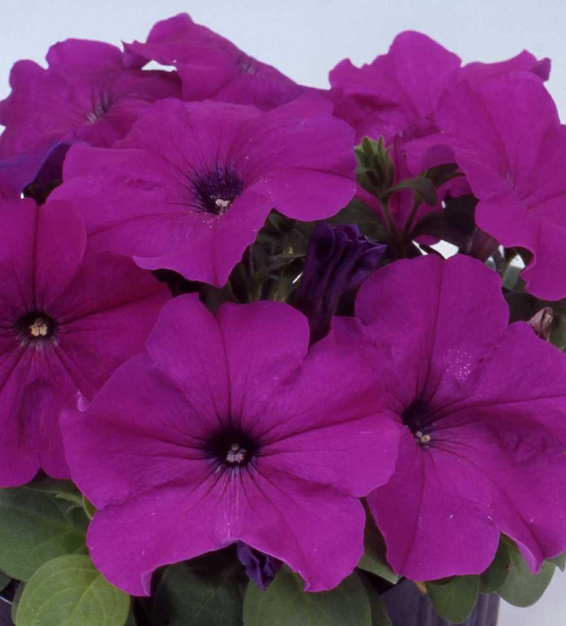 Эта петуния цветет с мая по июль, радуя глаз фиолетовыми цветками. Она предпочитает солнечные места и плодородные почвы. Для ухода за ней необходимо регулярное поливание и опрыскивание, а также подкормки для обильного и продолжительного цветения.